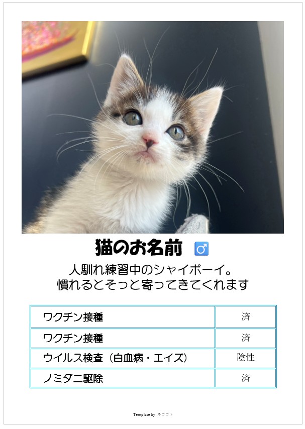 譲渡会で使えるプロフィールカードの無料Wordテンプレートです。